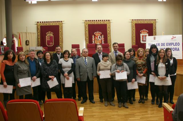 El Alcalde de Yecla, Marcos Ortuño Soto, junto al Consejero de Educación Formación y Empleo, Constantino Sotoca, han presidido el acto de clausura y entrega de diplomas del Taller de Empleo "Yecla Incorpora", que ha organizado la Concejalía de Formación y Empleo, enmarcado en los programas cofinanciados por el Fondo Social Europeo y subvencionado por la Consejería de Educación, Formación y Empleo.
