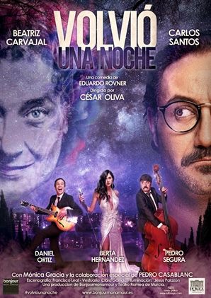 Por último, la compañía Bonjour mon amour llevará 'Volvió una noche' al Teatro Concha Segura de Yecla, el día 11, y al Teatro Villa de Molina el día 26, una obra original Eduardo Rovner -uno de los mejores dramaturgos contemporáneos en lengua española- con una escenografía de Francisco Leal llena de imaginación, iluminación de Jesús Palazón y la puesta en escena de César Oliva.