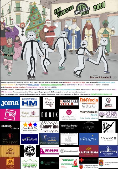 Ya está abierto el plazo de inscripción a través de Alcanza Tu Meta (https://www.alcanzatumeta.es/inscripcionp1.php?id=574773), hasta el 27 de diciembre a las 17:00h. para pagos con tarjeta (TPV), con una cuota mínima de 3€ y a partir de la cual cada inscrito podrá aportar lo que considere. Todo lo recaudado será donado a la Asamblea local de Cruz Roja en Yecla, pudiendo realizarse también inscripciones presenciales en su sede, todos los martes, jueves y viernes de 17:30 a 20:30h.