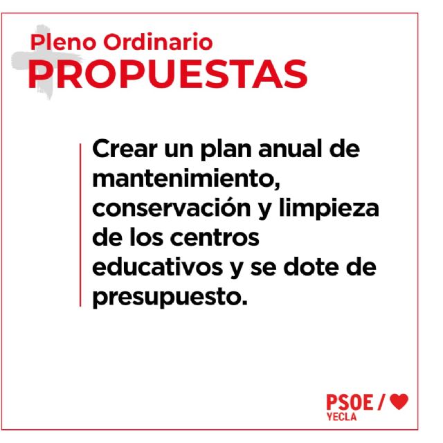 El Grupo Municipal Socialista urge a la colaboración y el apoyo de todos los sectores de la comunidad de Yecla, incluidos otros grupos políticos y las AMPAS, para convertir este plan en una realidad y garantizar que nuestros estudiantes dispongan de un entorno educativo seguro y estimulante.