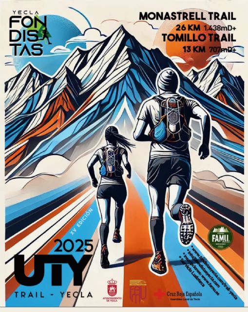 El Club Fondistas Yecla, en colaboración con el Ayuntamiento de Yecla y su Servicio Municipal de Deportes, así como la FAMU, organiza la XV UTY Trail, 5ª prueba de la TTF2025, 1ª de la Liga de Promoción Jóvenes FAMU y Cto. Regional Trail Classic